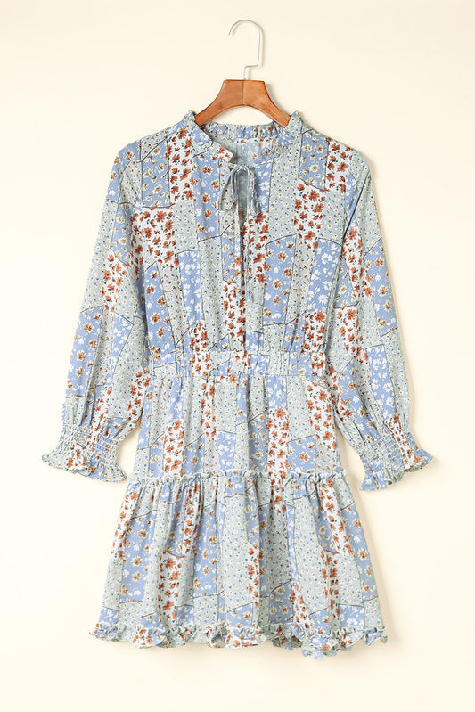 Dotted Smocked Ruffled Long Sleeve Mini Dress