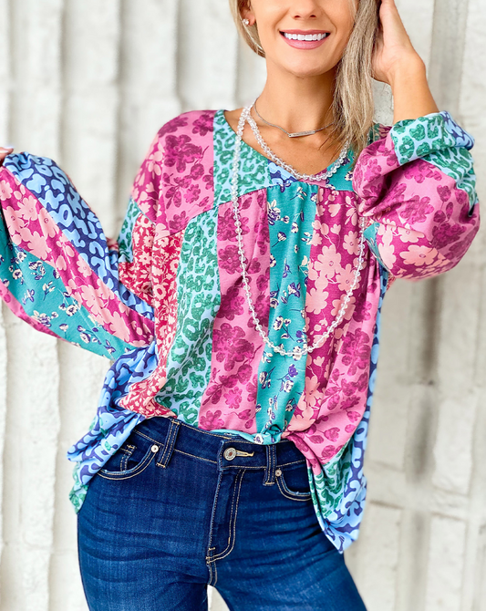 Multicolor Floral Leopard Mix Patchwork Loose Pullover