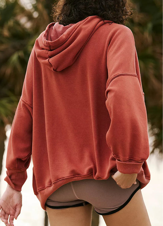 Drop Shoulder Pocketed Baggy Drawstring Hoodie