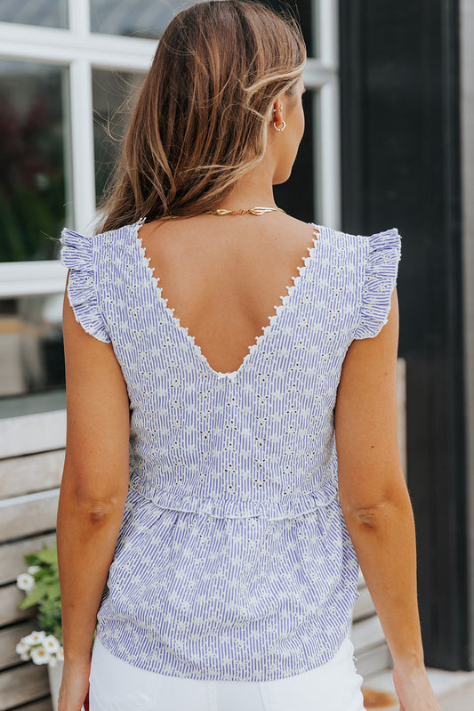 Gray Lace Embroidery Ruffled Sleeveless Top