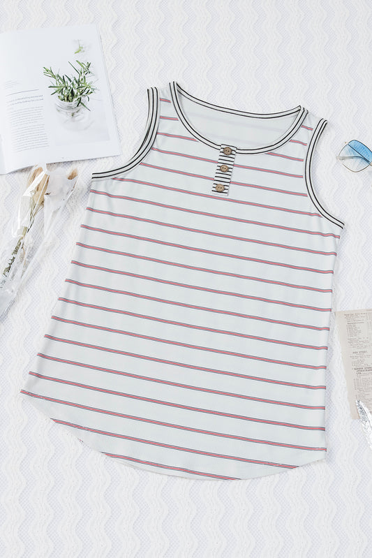 Blue Abstract Striped V Neck Knotted Straps Tank Top