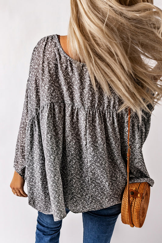 Floral Print Kimono Sleeve Ruched Blouse