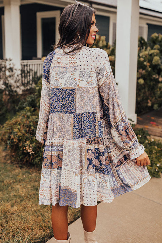 Multicolor Floral Patchwork Print Casual Long Sleeve Dress