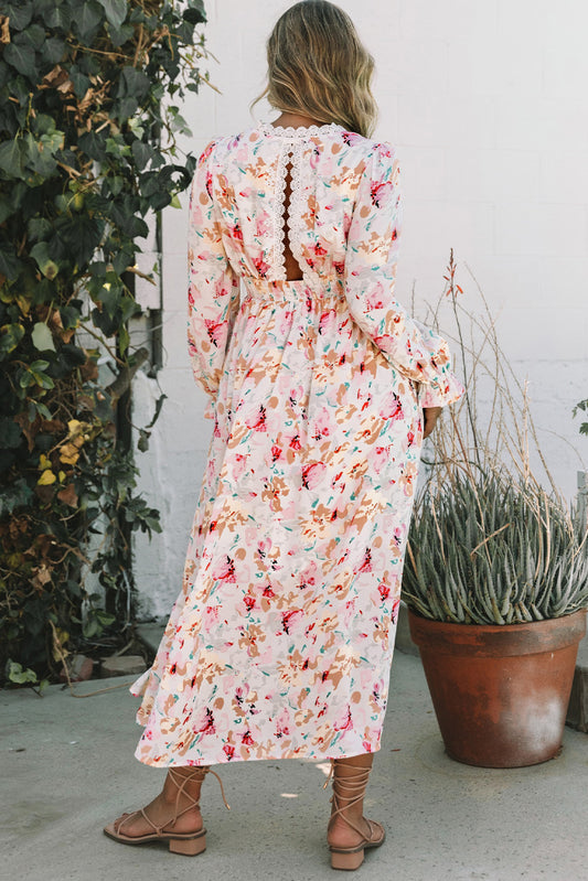 Pink Lace Patchwork Cut Out Back Floral Maxi Dress