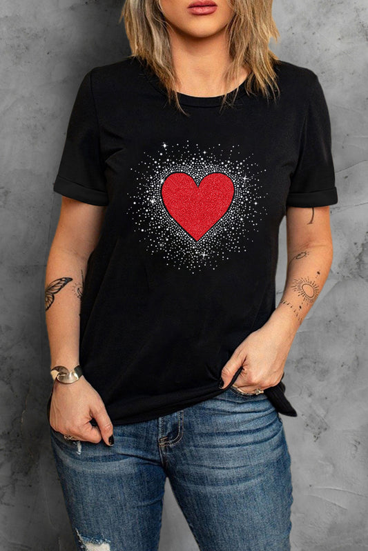 Black Valentines Heart Pattern Shining Spots Graphic Tee