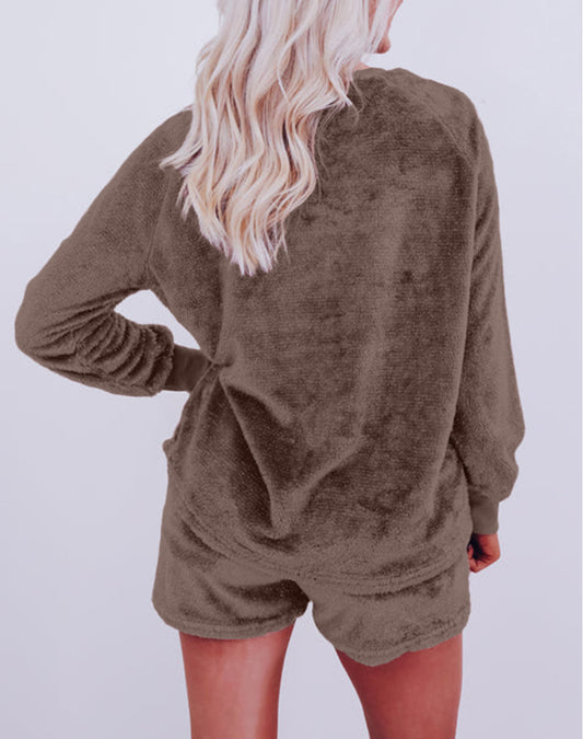 Solid Loose Fit Two Piece Fleece Lounge Set