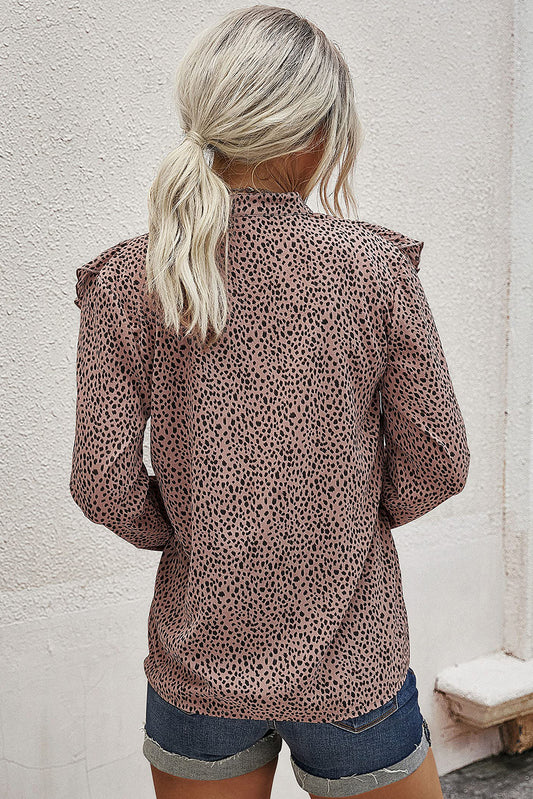 Leopard Print Long Sleeve Ruffle Loose Blouse