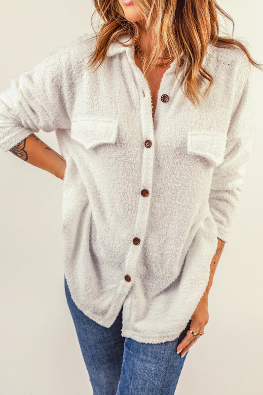 Sky Blue Waffle Knit Buttons Cropped Jacket with Pockets