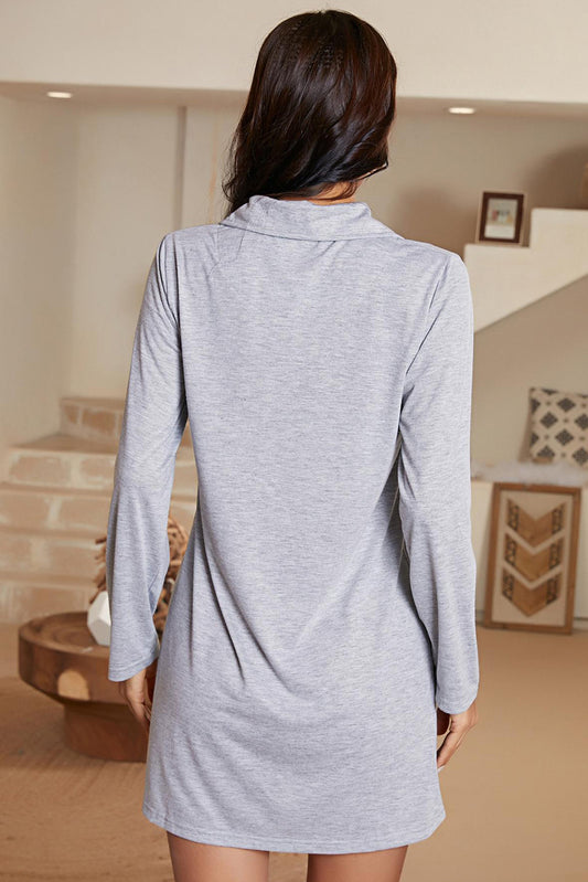 Gray Heart Print Pocket Button Shirt Lounge Dress