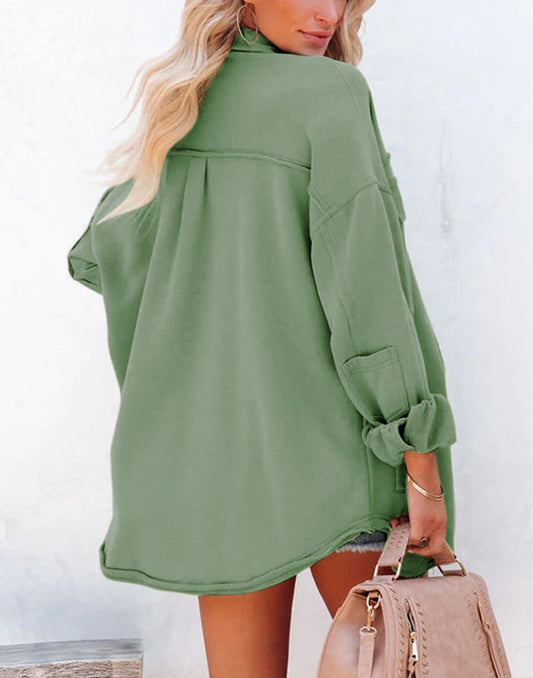 Buttoned Long Sleeve Pocketed Shirt Jacket
