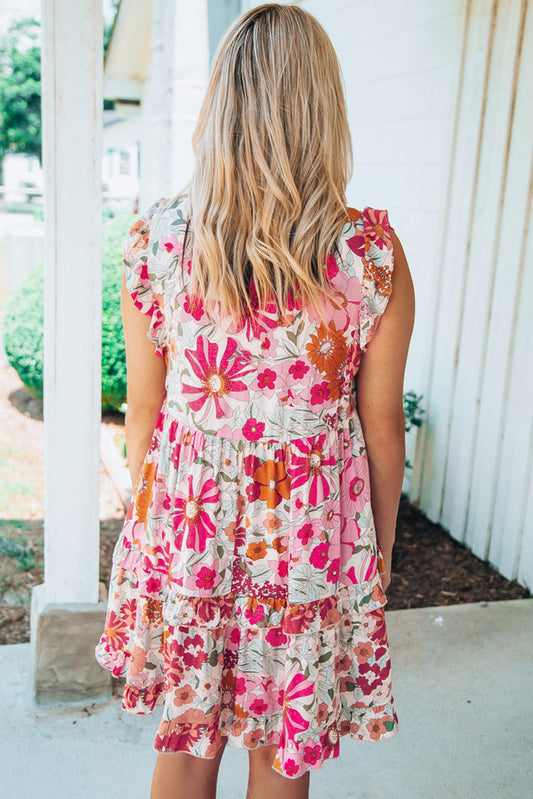 Pink Leopard Print V neck Ruffle Swing Mini Dress