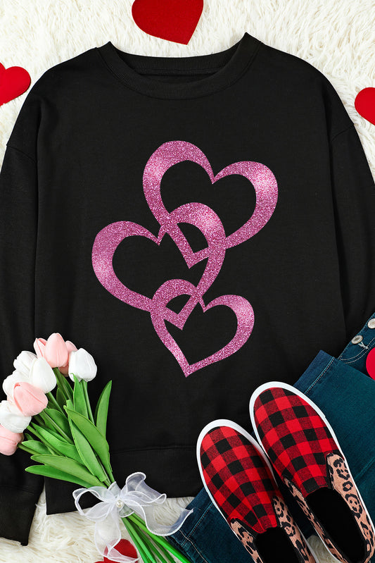 Black Glittering Heart Chain Valentine\'s Day Sweatshirt