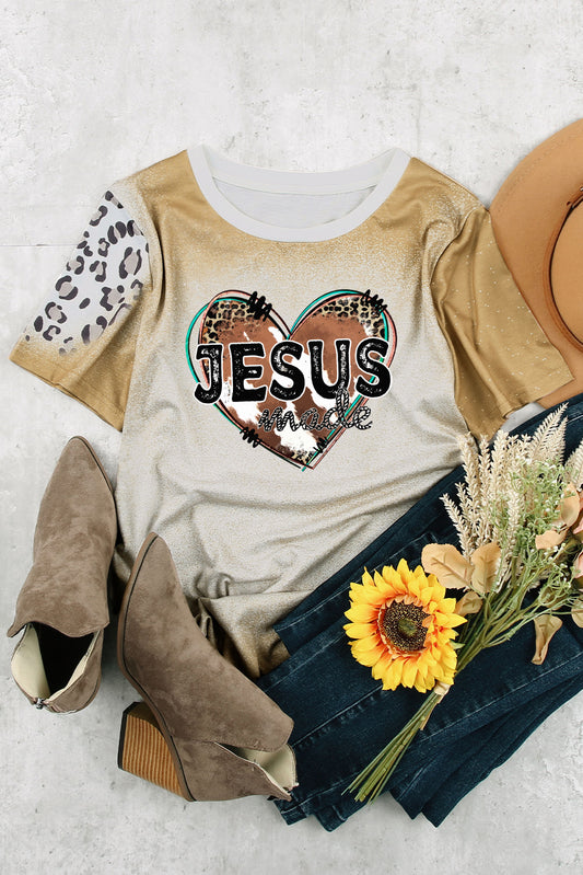 Khaki Jesus Heart Graphic Print Bleached Valentines T Shirt
