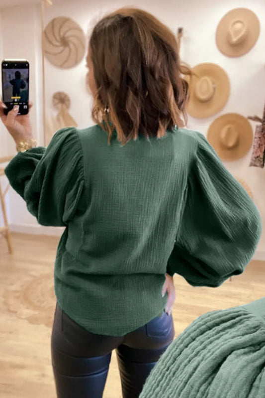 Red Polo Collar Buttoned Patchy Top with Pockets