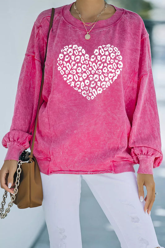 Rose Heart Shaped Leopard Print Patchwork Pullover Sweatshirt