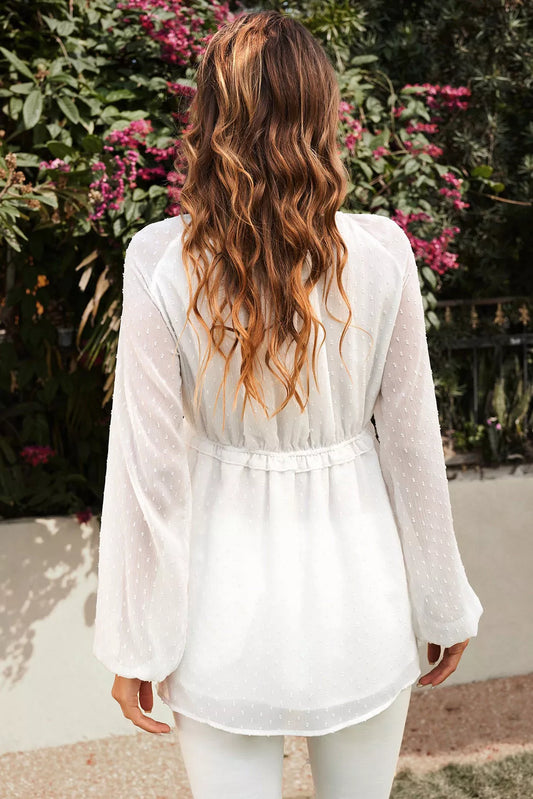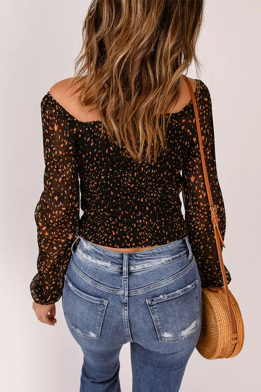 Black Wild Moss Spots Ruched Sheer Long Sleeve Top