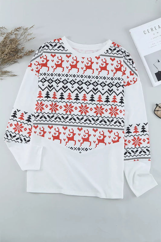 Multicolor Christmas Graphic Print Long Sleeve Top