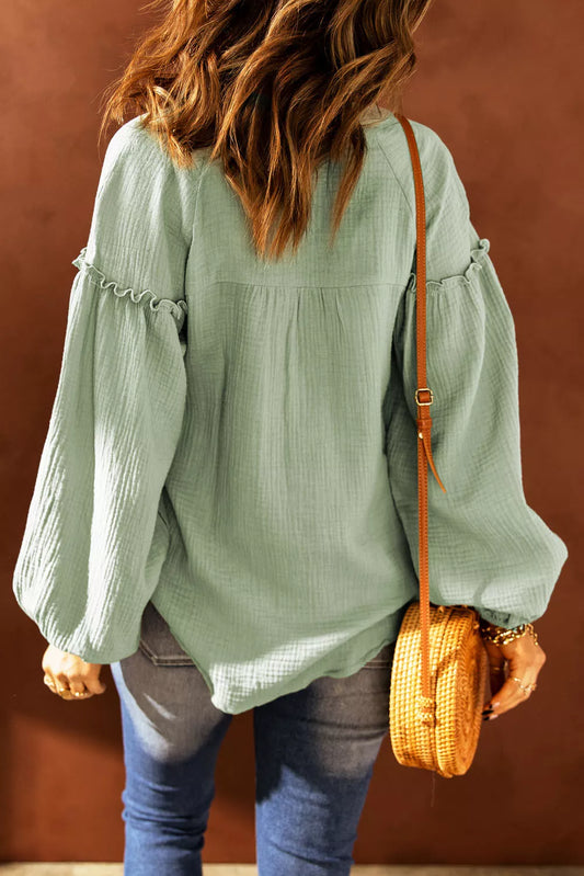 Polka Dot Mesh Sleeve Waffle Knit Top