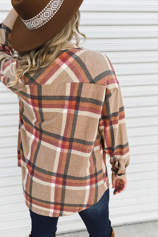 Chest Pockets Buttoned Oversized Plaid Shacket