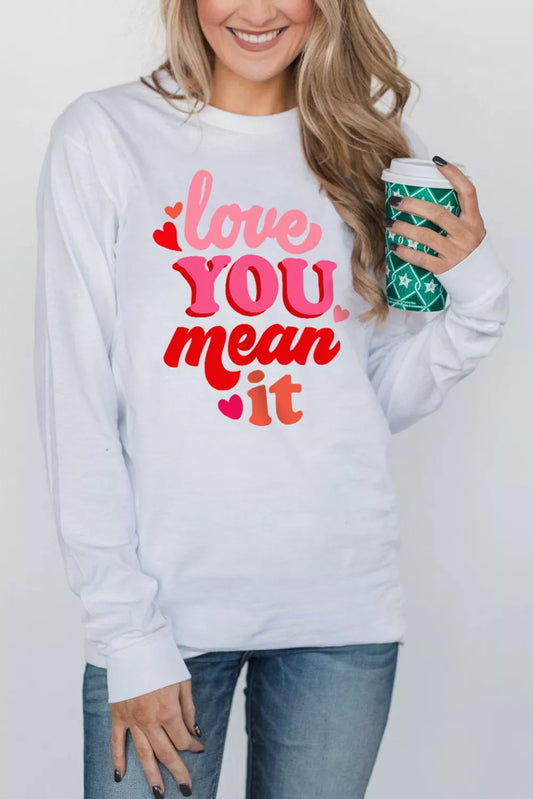 White Valentine's Day Love You Mean It Print Long Sleeve Top