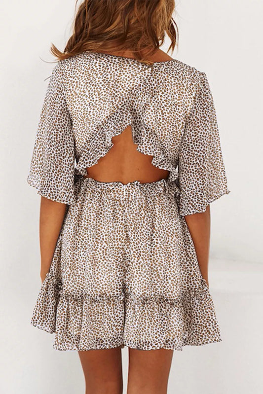 White Floral Print Bow Knot Backless Square Neck Mini Dress