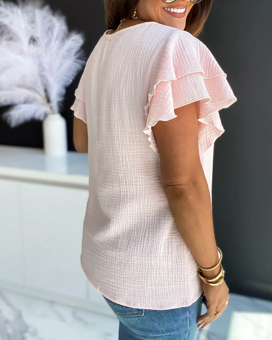 Multicolor Striped Color Block Ruffled O-neck Sleeveless Top