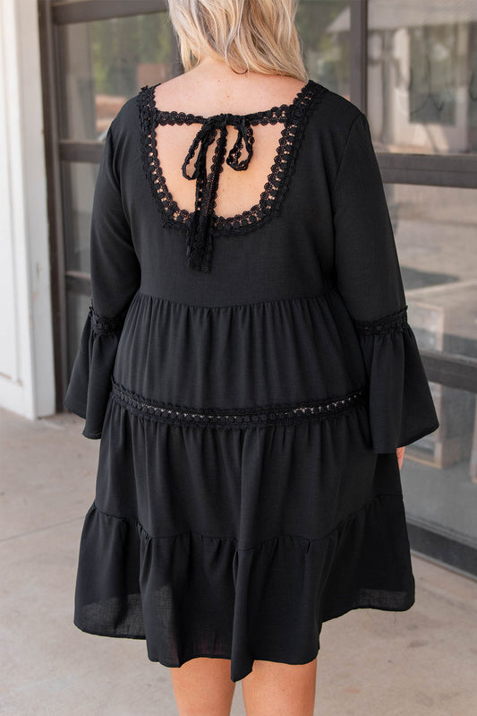 Lace Trim Tie Back Plus Size Tiered Swing Dress