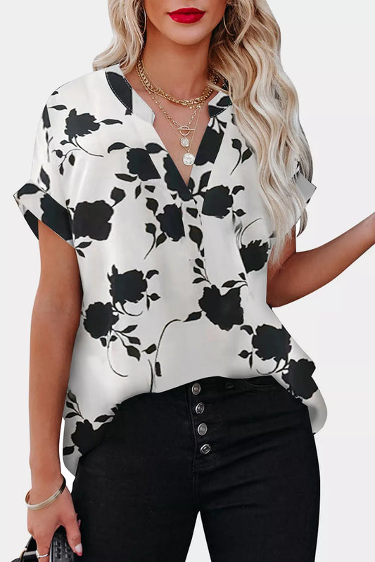 Multicolor Floral Drawstring Tie Center V Neck Blouse