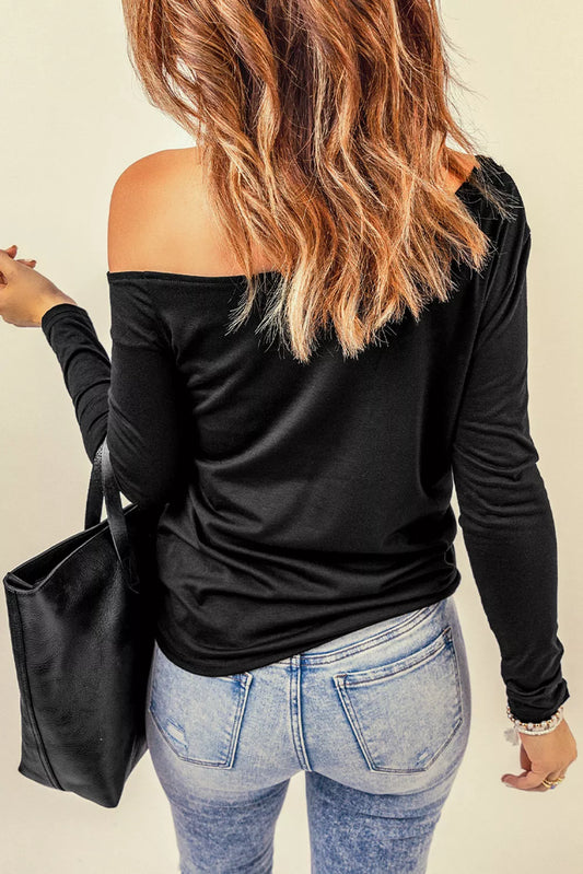 Black Rhinestone Detail Asymmetric Cold Shoulder Top