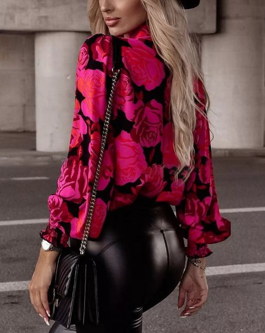 Rose Blooming Rose Allover Puff Sleeve Shirt