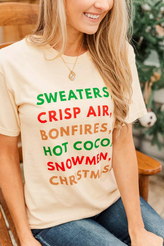 Khaki Chrisrtmas Vibe Letters Print T-shirt