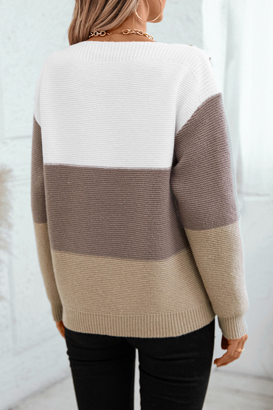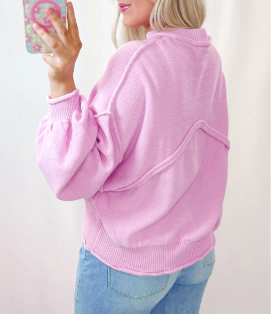 Raw Edge Ribbed Detail Drop Shoulder Sweater