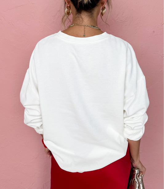 Boat Neck Drop Shoulder Pointelle Knit Sweater