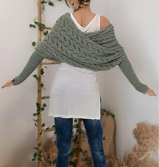 Cross Detail Hollowed Knit Scarf with Sleeves