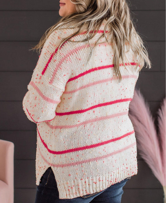 Stripe Drop Shoulder Side Split Plus Size Sweater