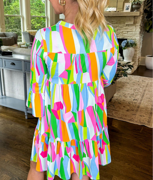 Plus Size Vibrant Abstract Print Tiered Ruffled Mini Dress