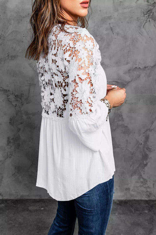 Buttoned V Neck Drop Shoulder Waffle Knit Top