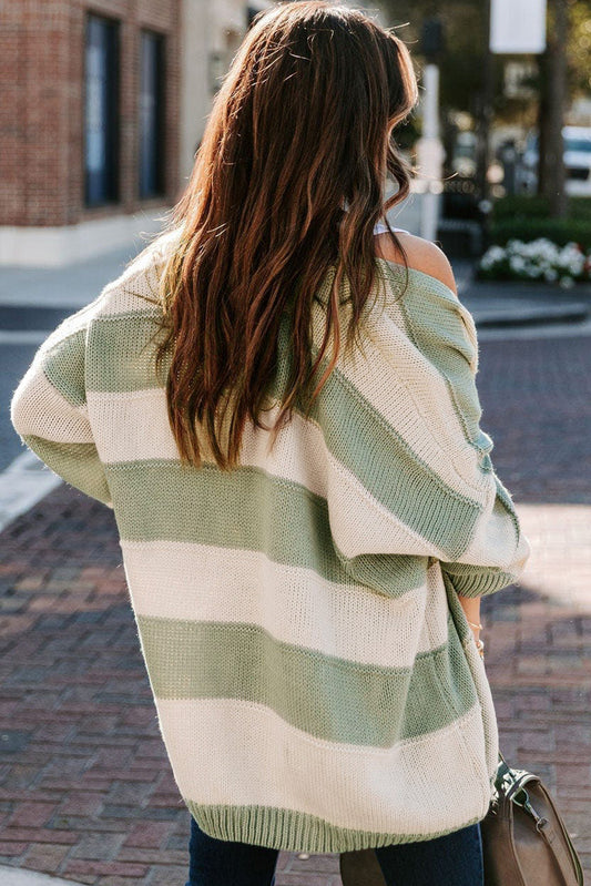 Women's Winter Casual Loose Halter Neck Cold Shoulder Ribbed Knit Sweater