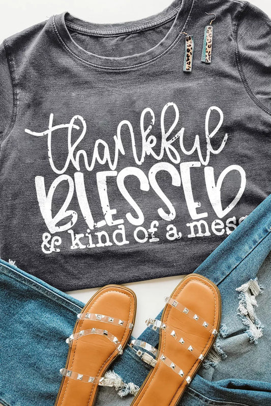 Gray BLESSED Letter Graphic Print Crew Neck T Shirt