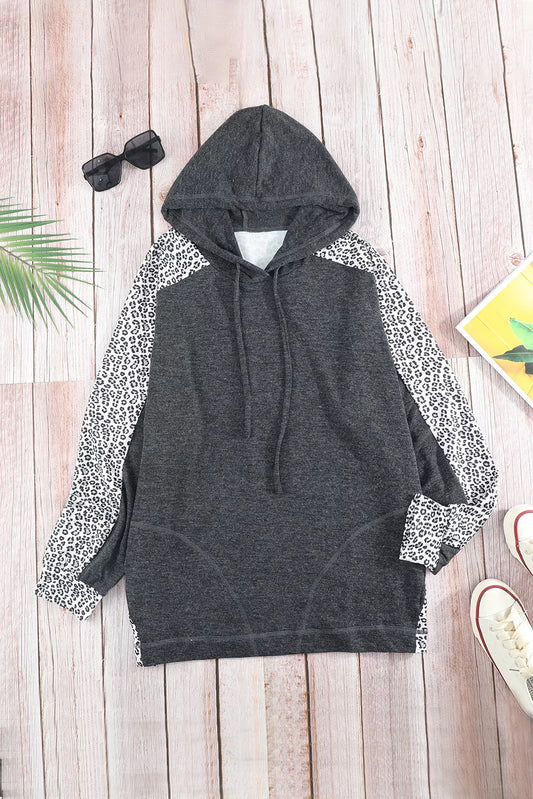 Leopard Color Block Pocket Fleece Quarter Zip Hoodie