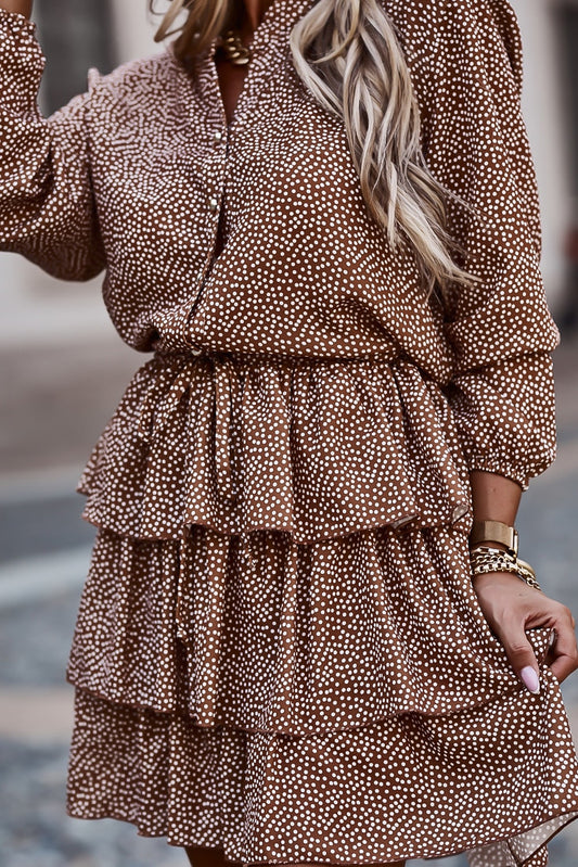 Polka Dot Print Tiered Ruffled High Waist Mini Dress