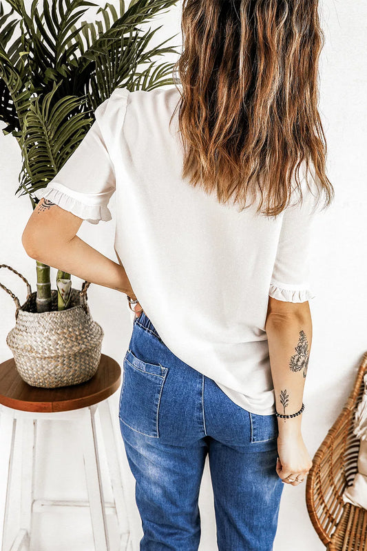 Frilled Hollow-out Short Sleeve Shirt