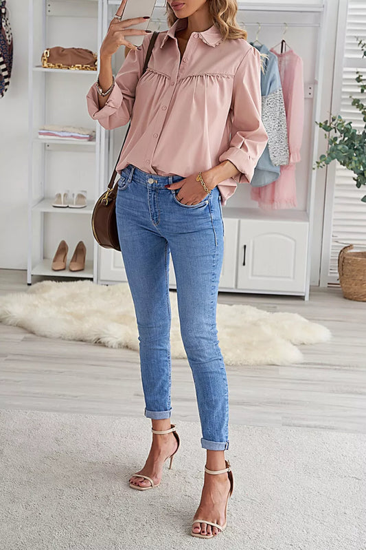 Plain Pleated Bust Cuffed Sleeves Shirt