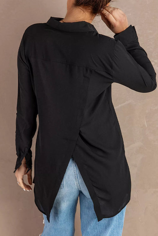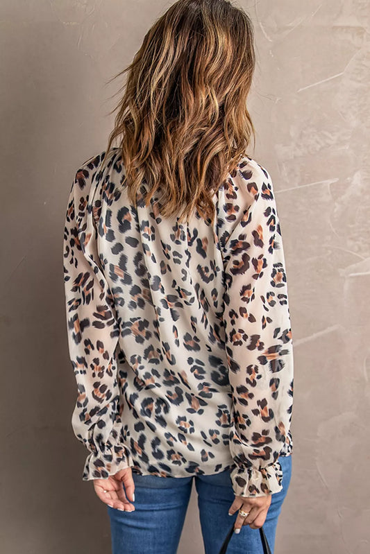 Leopard Print V Neck Lantern Sleeve Buttons Shirt