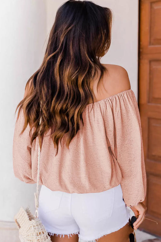 Subtle Jacquard Long Sleeve Off Shoulder Blouse