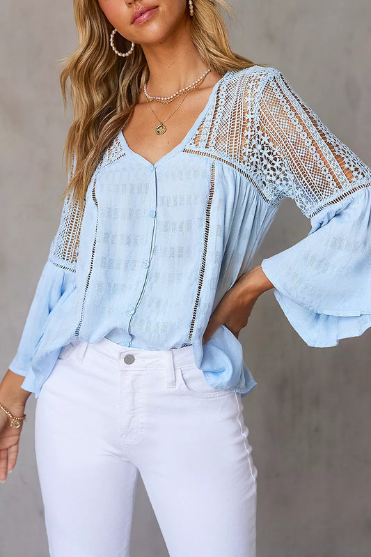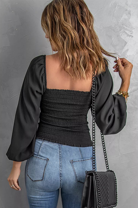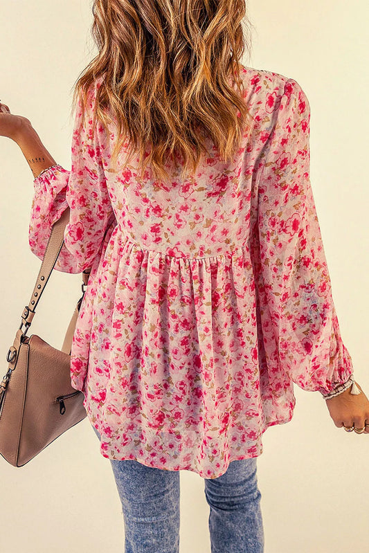 Tie-dyed V Neck Bubble Sleeve Babydoll Top