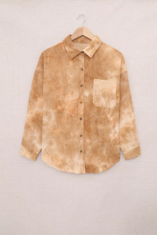 Plaid Color Block Button-up Oversize Corduroy Shirt
