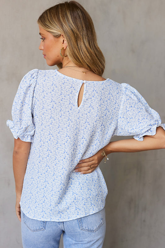Lace Patchwork Waffle Knit Balloon Sleeve Blouse