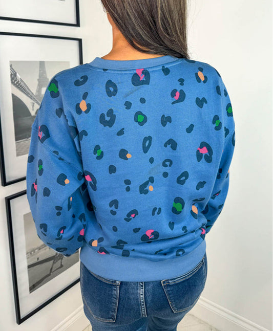 Plus Size Leopard Ribbed Edge Drop Shoulder Pullover Sweatshirt