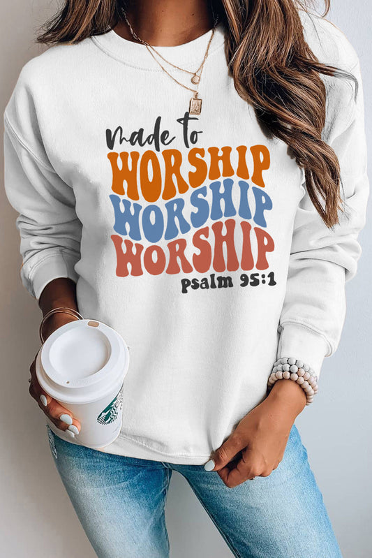 White Made to Worship Psalm 95:1 Long Sleeve Sweatshirt